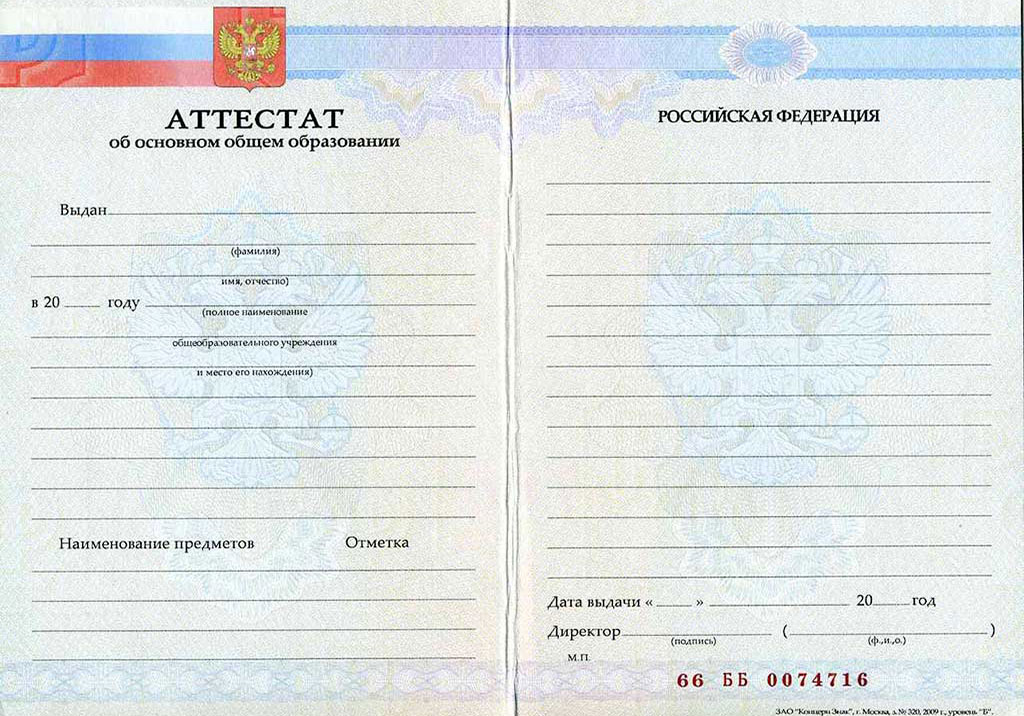 Аттестат за 9 класс 2007 — 2009 год Настоящий Гознак