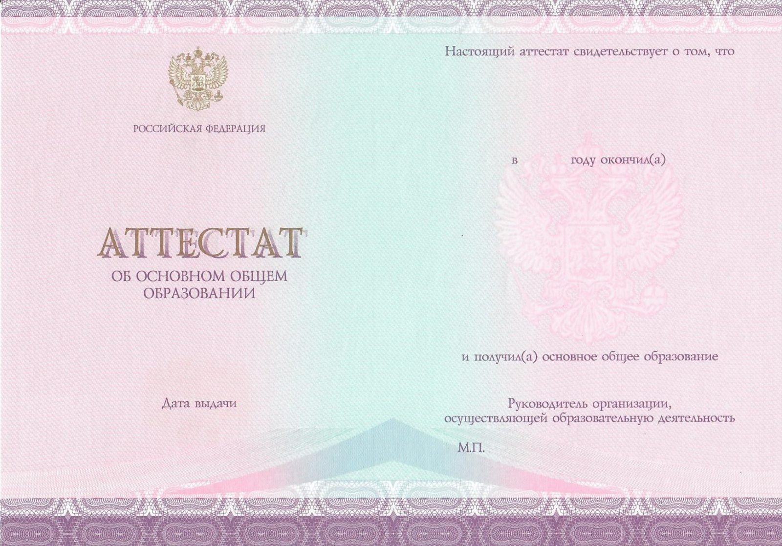 Аттестат за 9 класс 2014 — 2024 год Настоящий Гознак